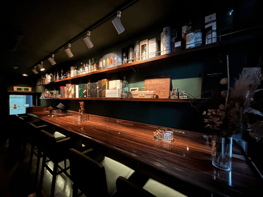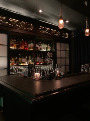 少し和風な店内、店長が得意とする和風なカクテルがオススメです。海外からお越しの方も多いので英語のメニューもご用意しております。