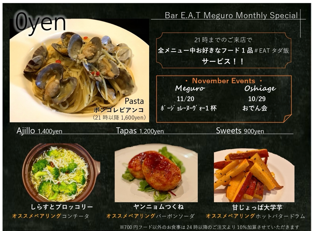 当日ご予約でお越しの方限定ボージョレーヌーヴォー1杯サービス