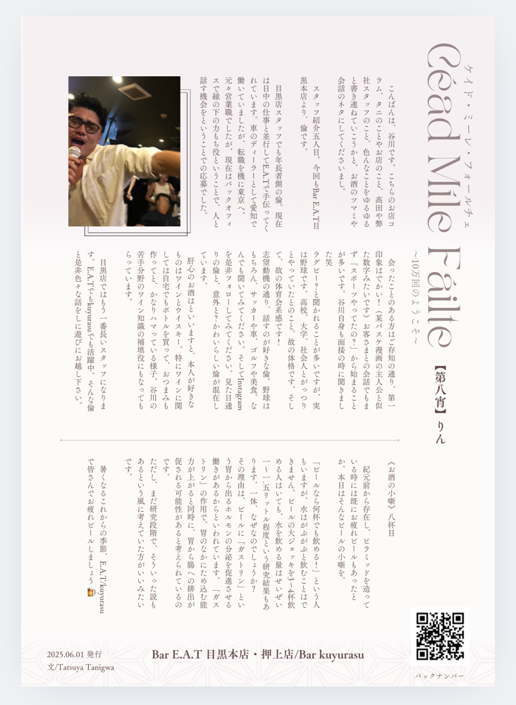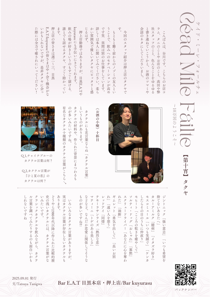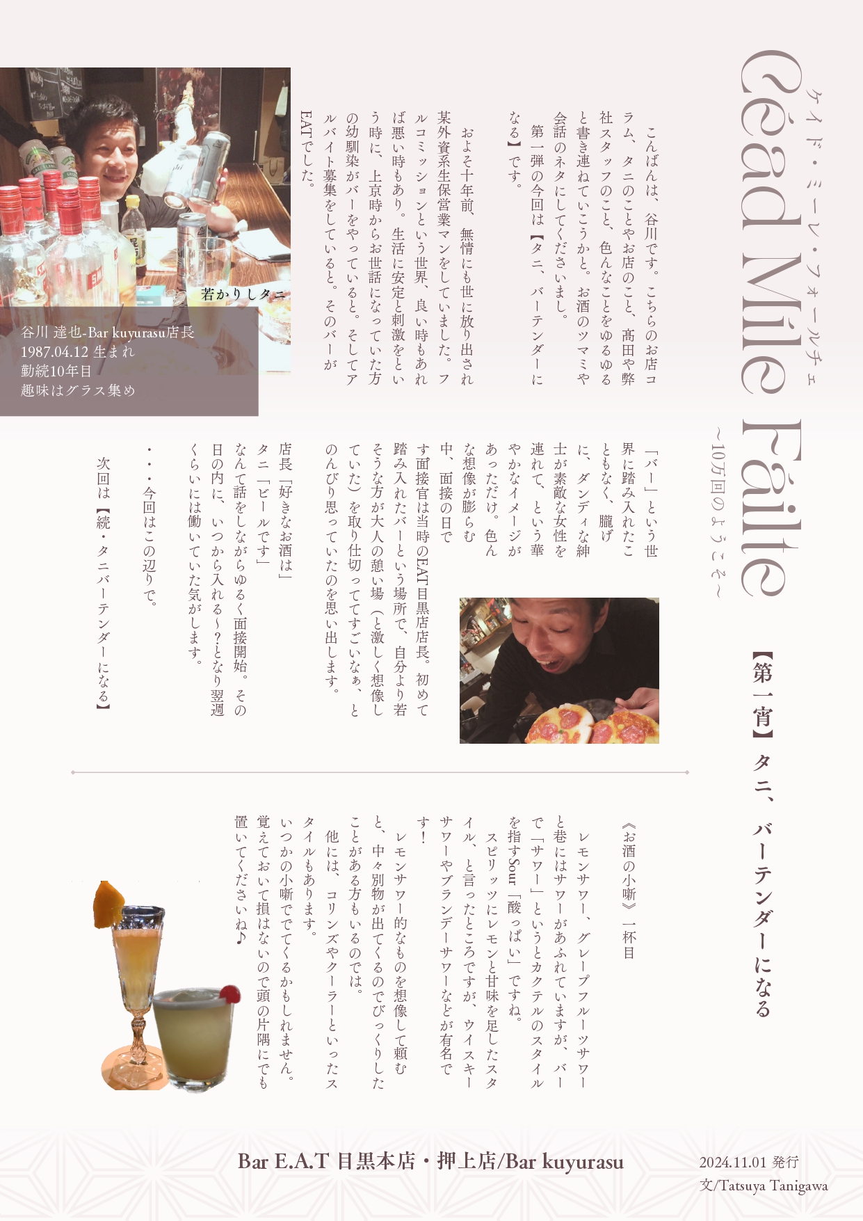 Bar E.A.Tの事、Bar kuyurasuの事、弊社スタッフの事を知っていただければ幸いです。